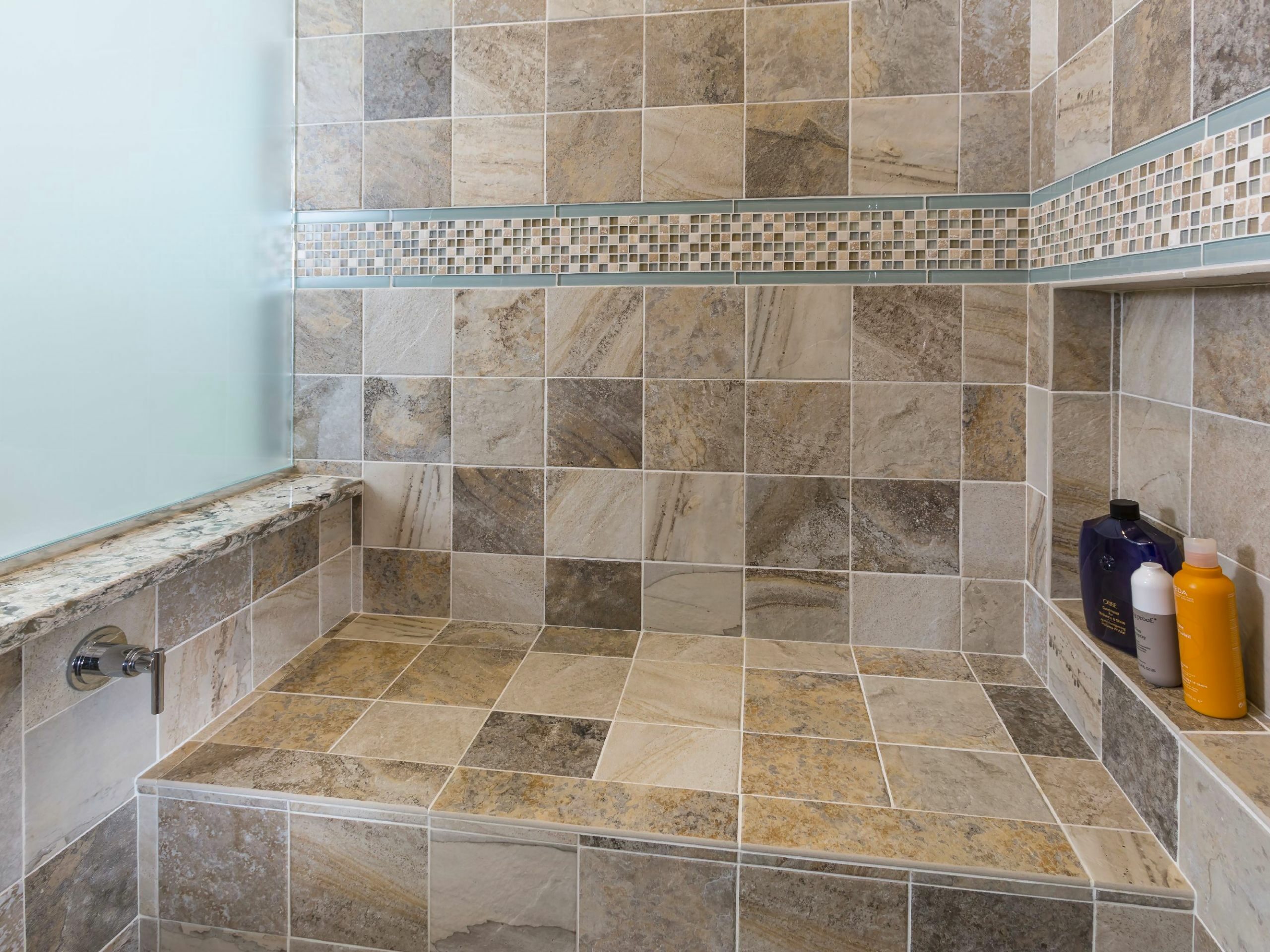A built-in shower bench or a fold-down seat in the shower area can be helpful for those who need to sit while bathing.