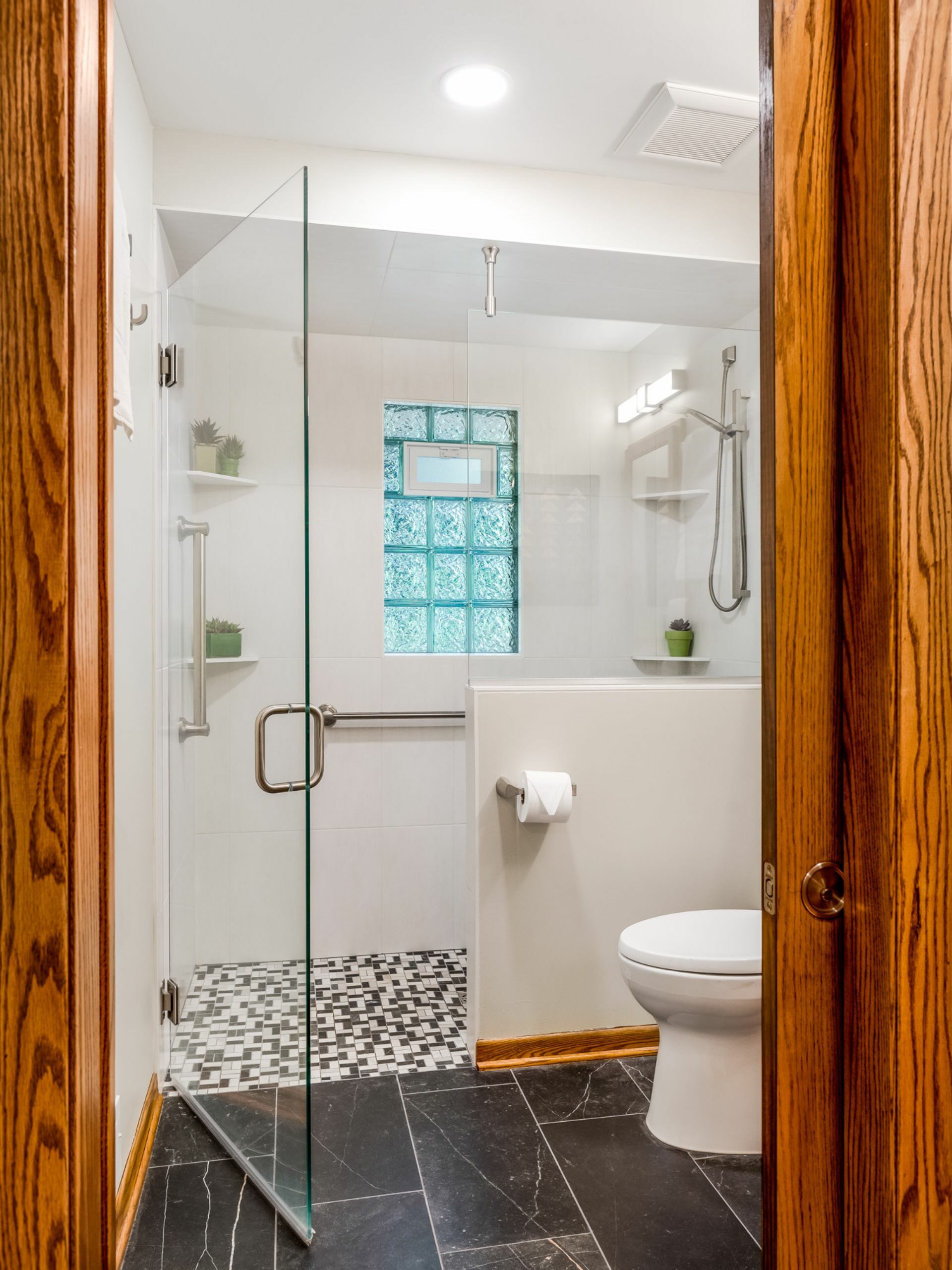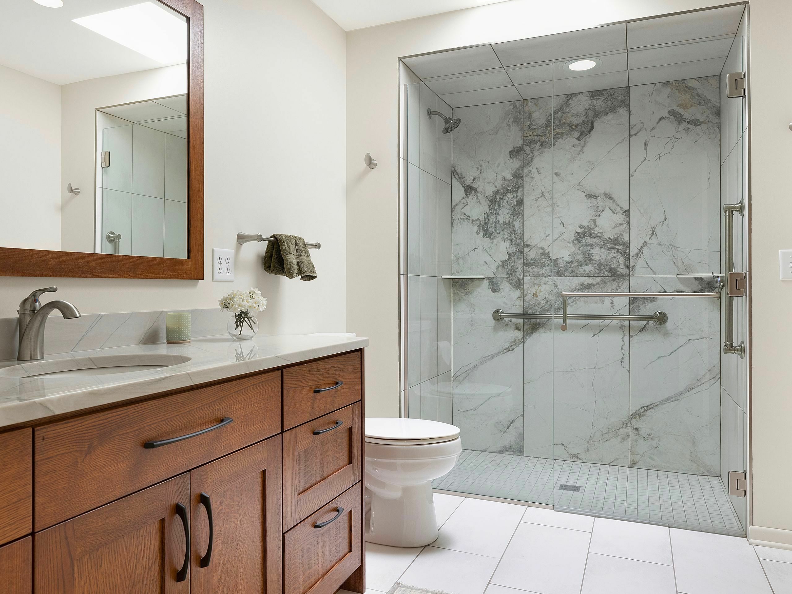 Proper lighting is crucial in aging-in-place bathrooms. Incorporate a combination of natural and artificial lighting to minimize shadows and provide even illumination.