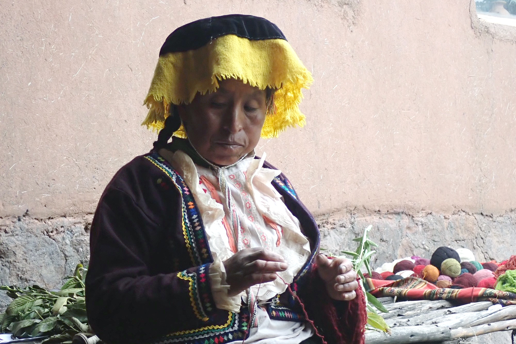 We visited an Amaru community that lives as their ancestors did over 500 years ago, using tools they make from tree branches and leather lacing. They till the soil by hand. They spin, dye, and weave yarn into beautiful items for their use.