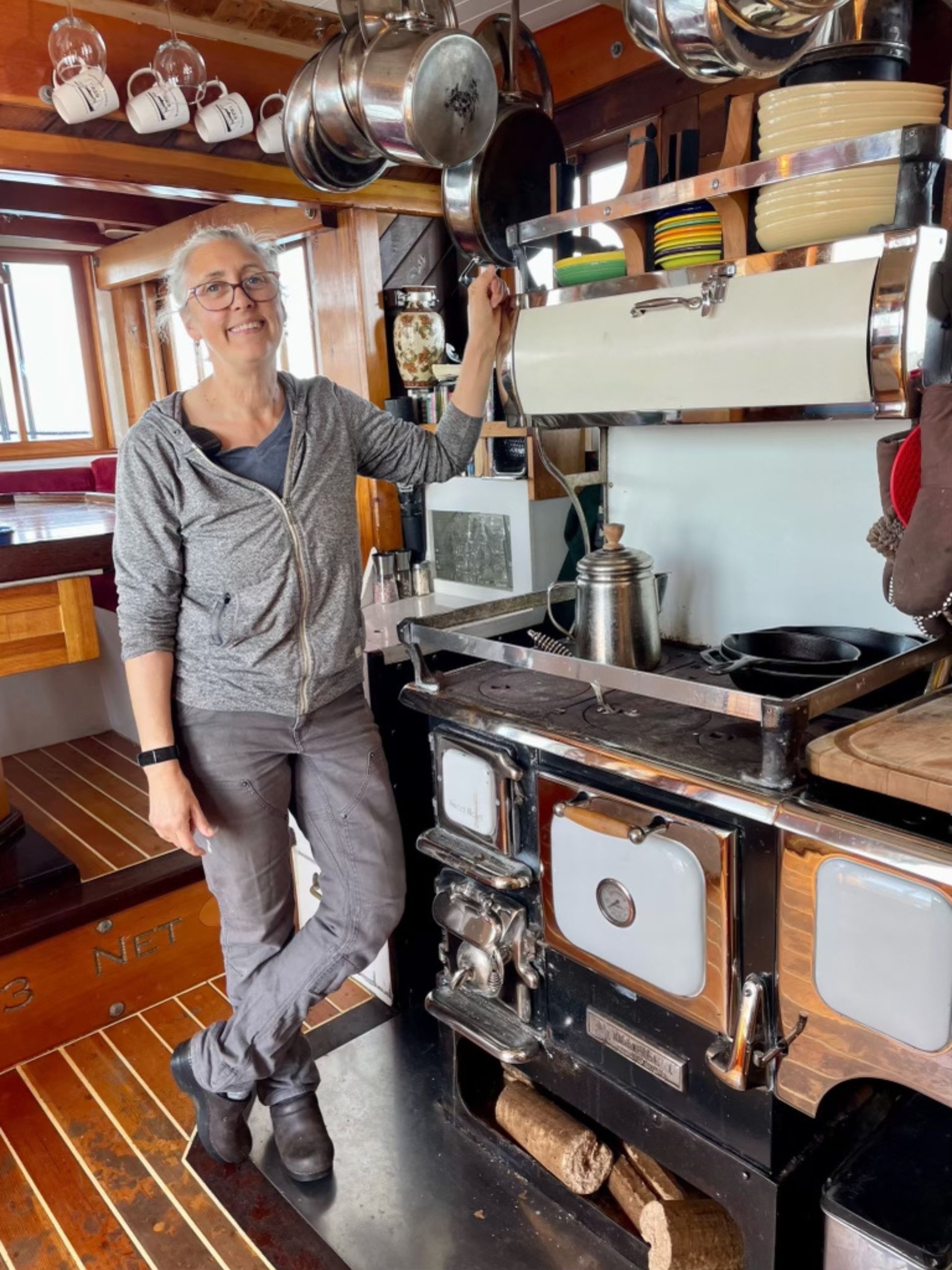 For me, that was a must-see. I then connected with them and found out that they take 8 people and tour the San Juan Islands in the fall (this is after they return from their summer cruises in Alaska). I was able to convince three friends/couples that this would be a great adventure and they agreed so we chartered the whole boat for a 4-day tour. The boat runs on 1929, 3-cylinder diesel engine (you have to be kidding me), and then the final clincher was she did all the cooking on the boat on a wood stove!