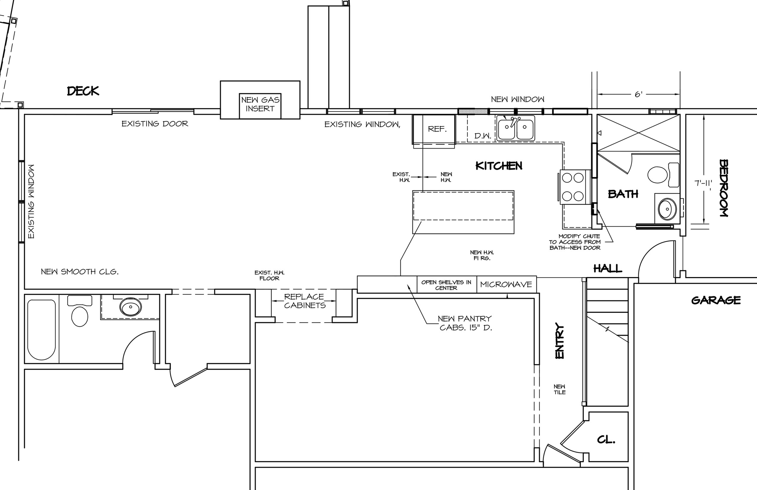 New windows in the kitchen and bath let in more light. Opposite the island, there’s even MORE storage!