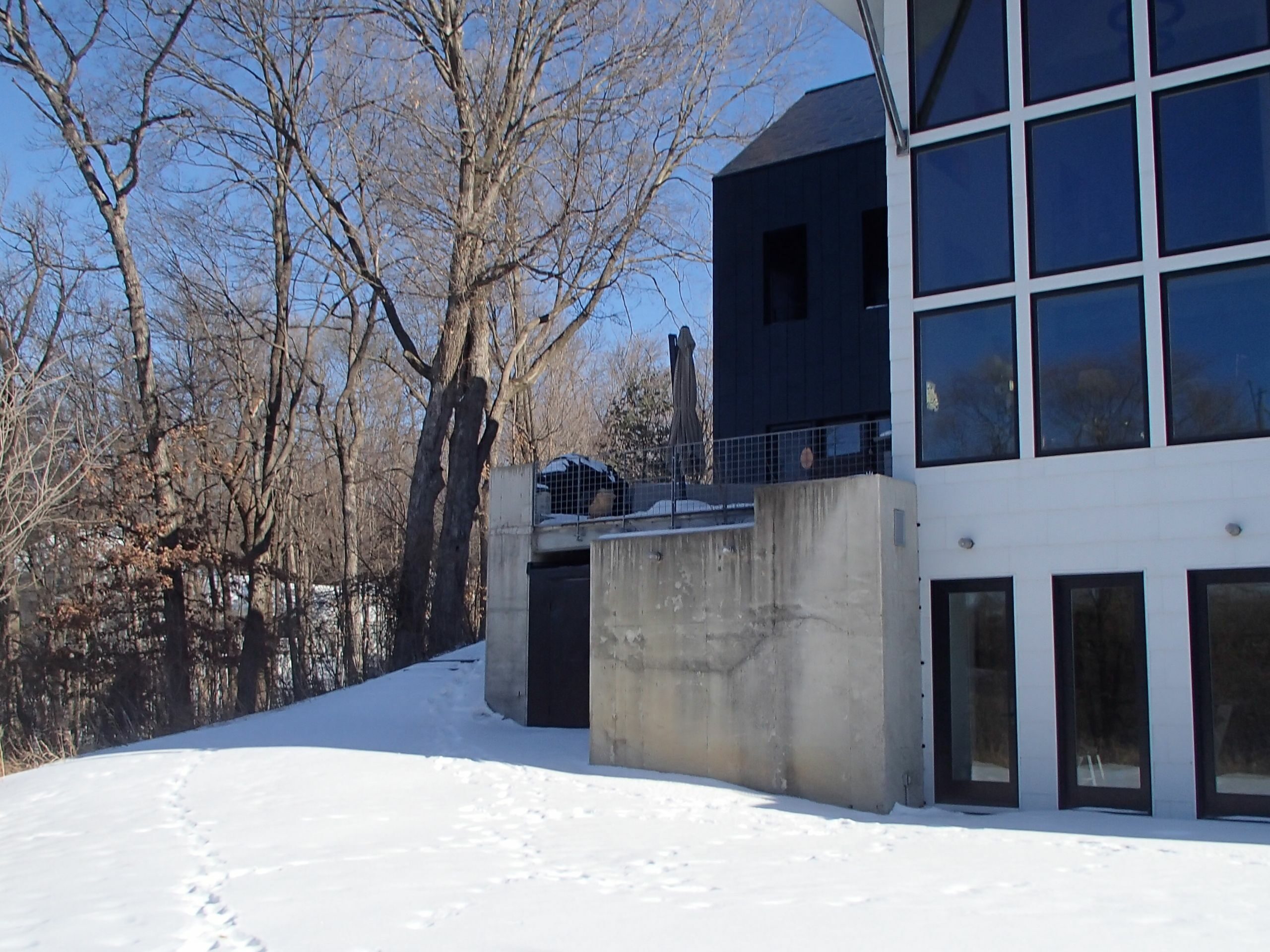 The space before the addition was susceptible to accumulating snow in the winter and becoming a waterlogged area in the summer due to drainage from the two roofs above.