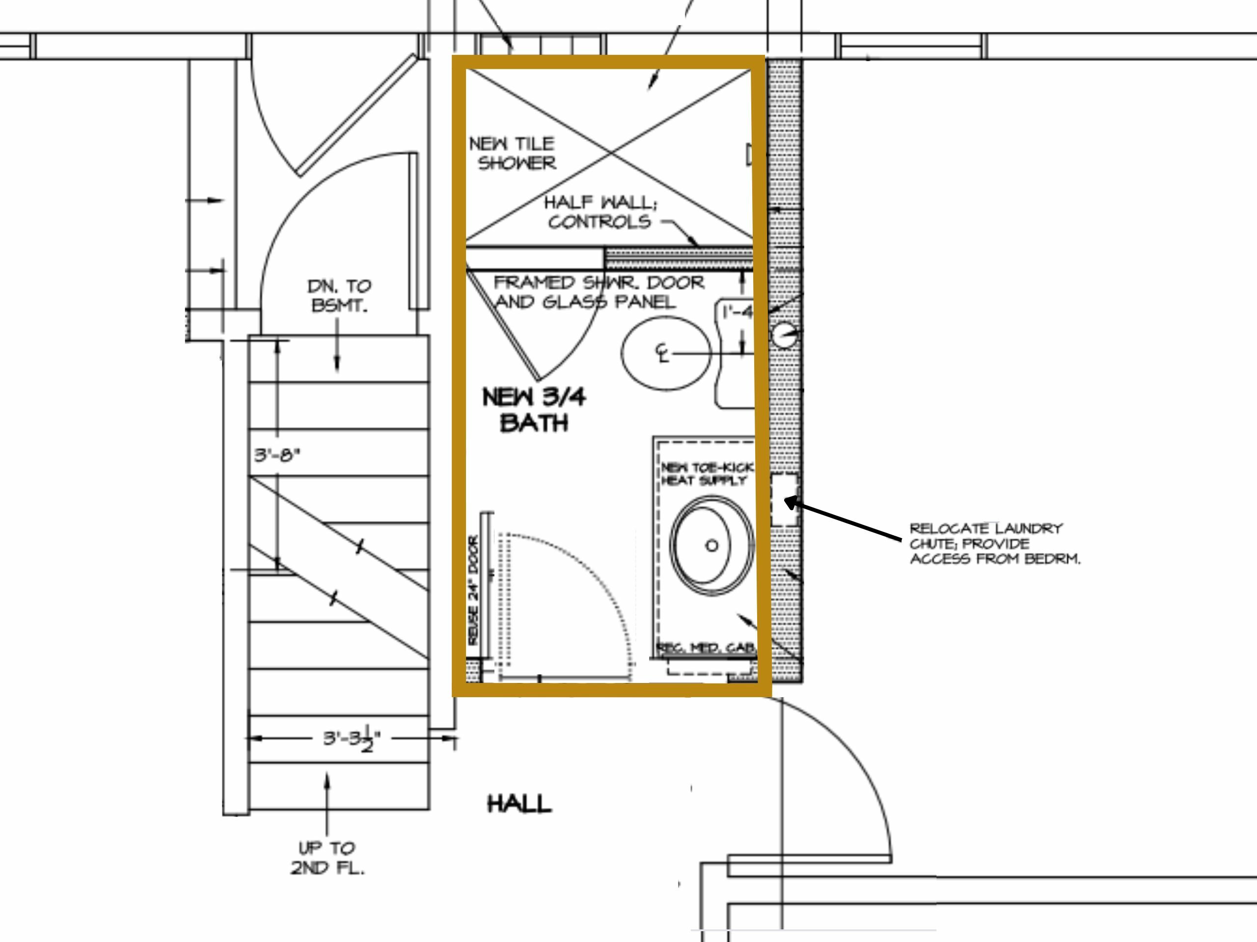 In order to expand the layout, we absorbed the two linen closets right outside the existing layout. One of the closets had a laundry chute that needed to stay. We modified the chute, custom to fit and it can now be accessed from the bedroom.