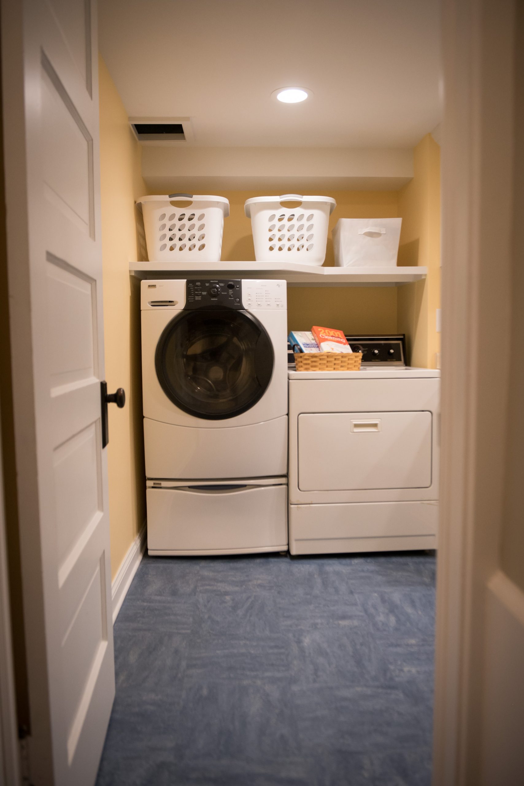 Upper and lower cabinets provide loads of storage. Luxury vinyl tile on the floor is durable and easy to clean. Doing laundry here doesn’t seem like a chore!