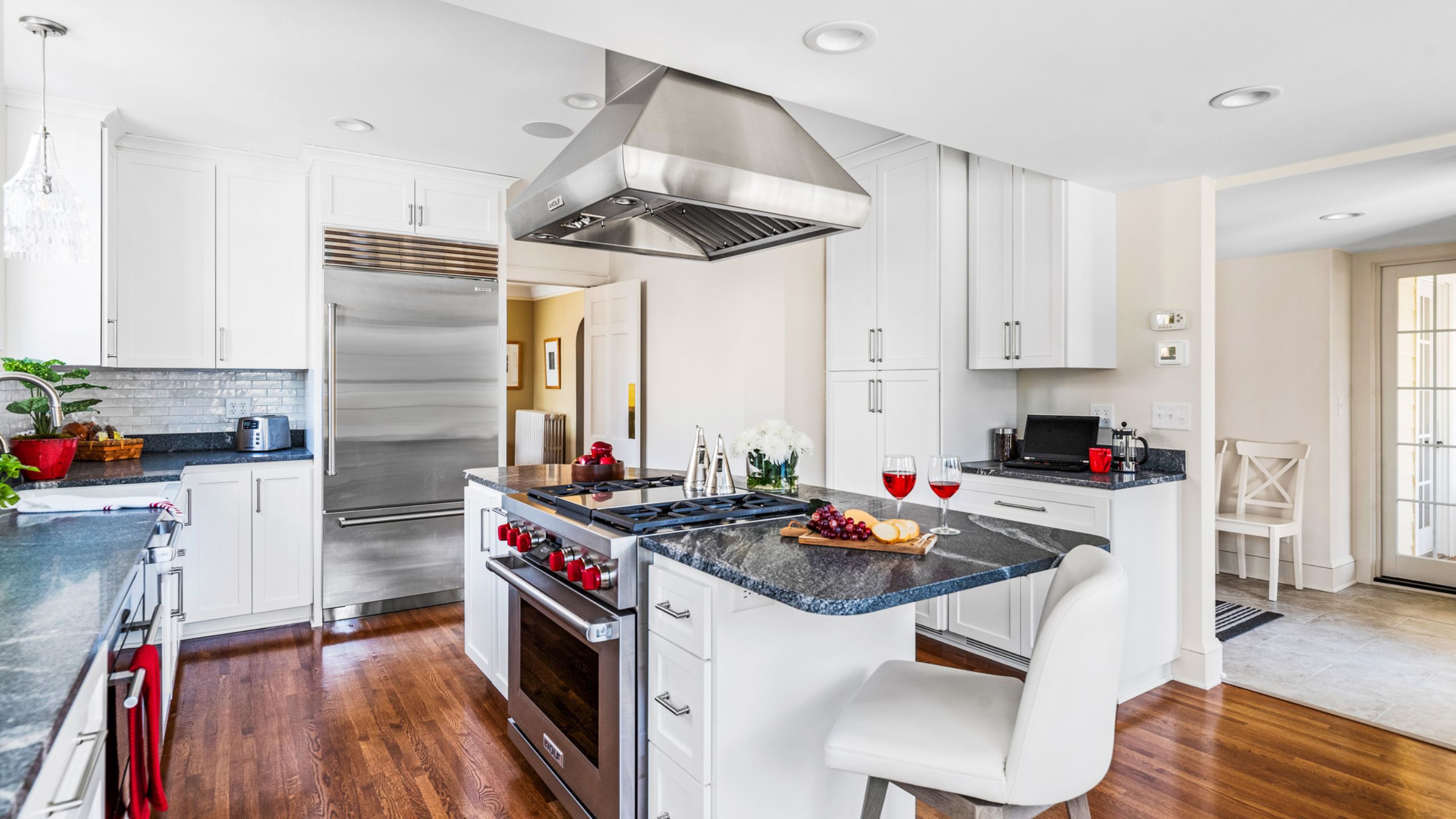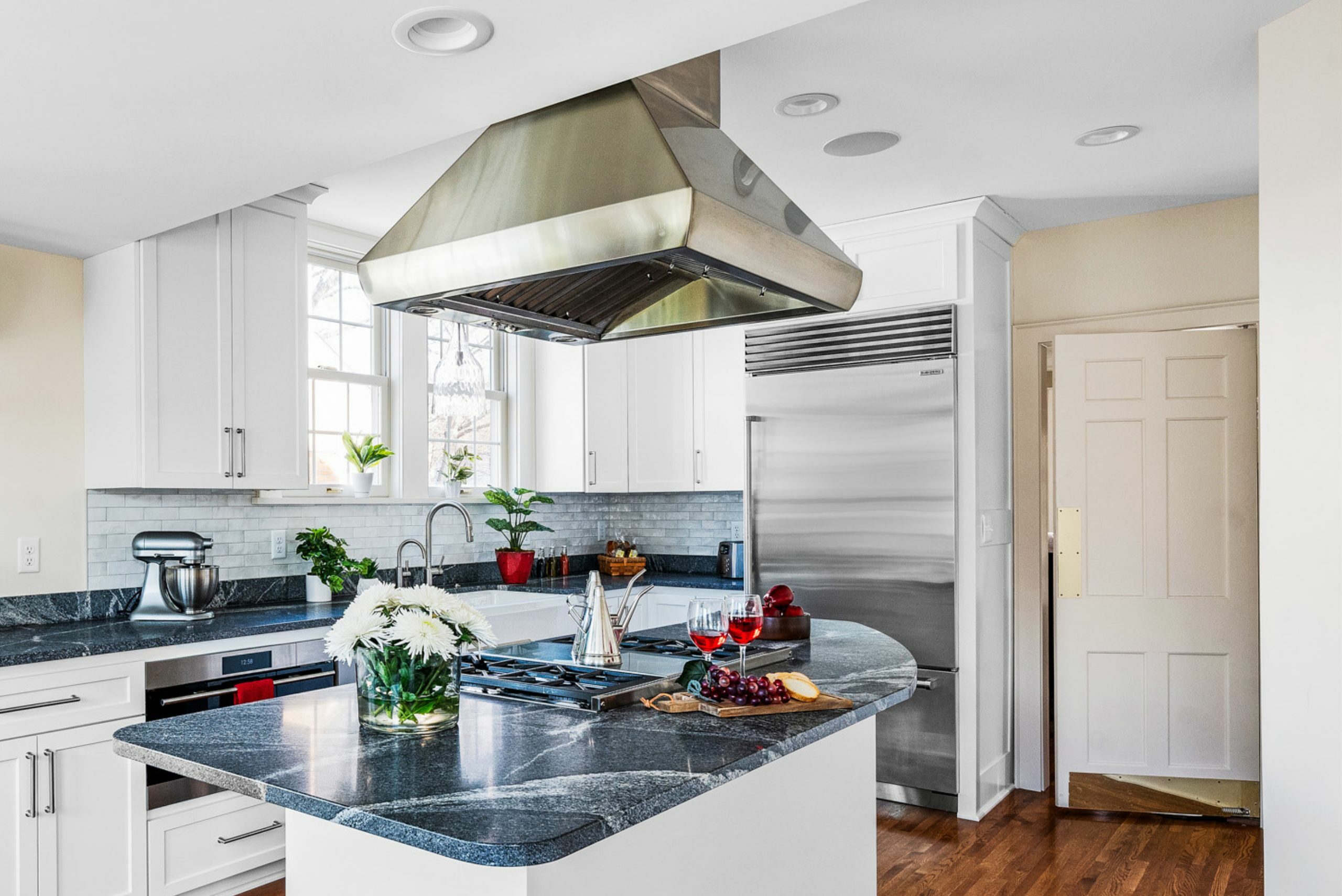 To create the perfect home for this family, we worked closely with them to redesign the kitchen, back entrance, and powder room. We made sure to listen to their needs and preferences every step of the way. In the end, they can enjoy a functional, classic white kitchen design with top-notch appliances and clever storage solutions, ready for some amazing cooking adventures!